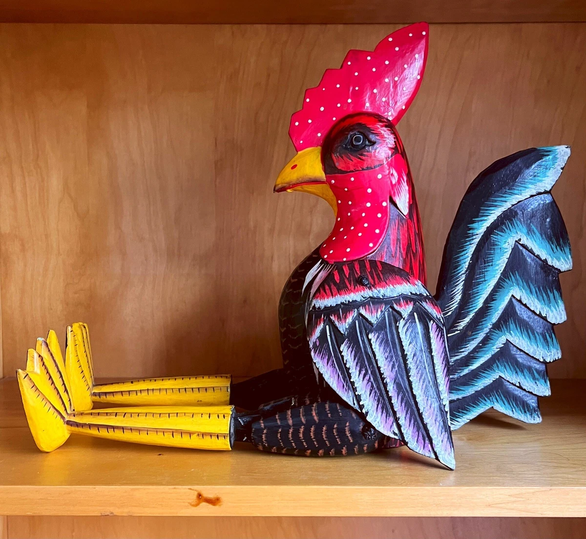Vintage Carved Wooden Rooster Chicken Hand Painted Hinged Shelf Sitter 19 Folk Ebay